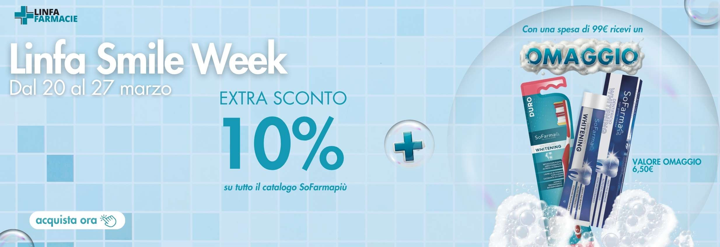Per ringraziarti del tuo primo acquisto su linfafarmacie.it ti riserviamo uno sconto extra del 5% sul tuo prossimo ordine (entro 30 giorni dalla consegna, con spesa minima di 49,90€).