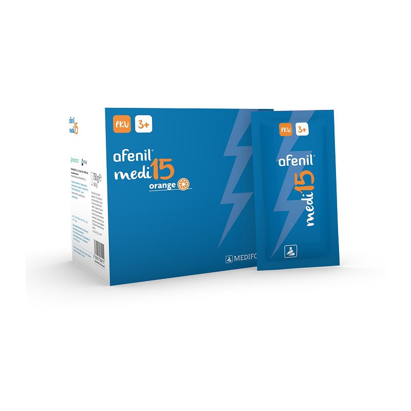 Avvertenze Afenil Medi 15 deve essere usato sotto controllo medico, da soggetti con accertata iperfenilalaninemia inclusa la fenilchetonuria. Afenil Medi 15 non può essere utilizzato come unica fonte di alimentazione. Tenere lontano dalla portata dei bambini.