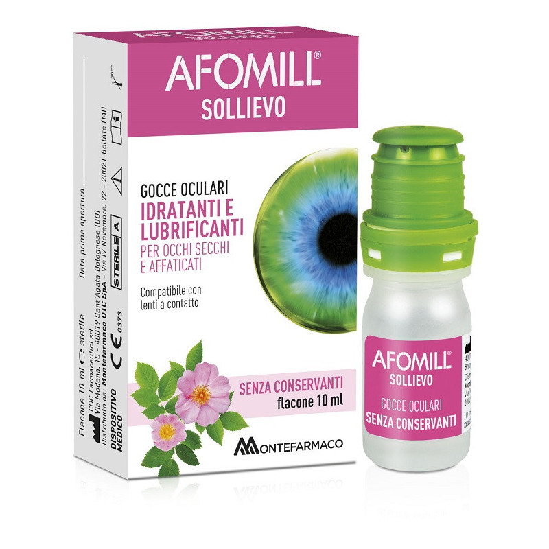 - Afomill Sollievo può essere utilizzato con lenti a contatto.