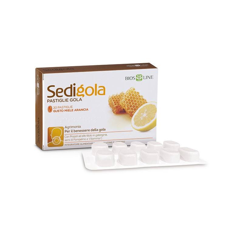 Sedigola Pastiglie Gola è utile per il benessere della gola grazie al suo contenuto di agrimonia, erba officinale ricca in tannini. La sua formulazione associa le ben note proprietà della propoli con quelle antiossidanti dei semi di pompelmo;inoltre contiene vitamina C, che contribuisce alla normale funzione del sistema immunitario. Il miele e gli oli essenziali di cannella e arancio dolce conferiscono al prodotto un particolare effetto rinfrescante.