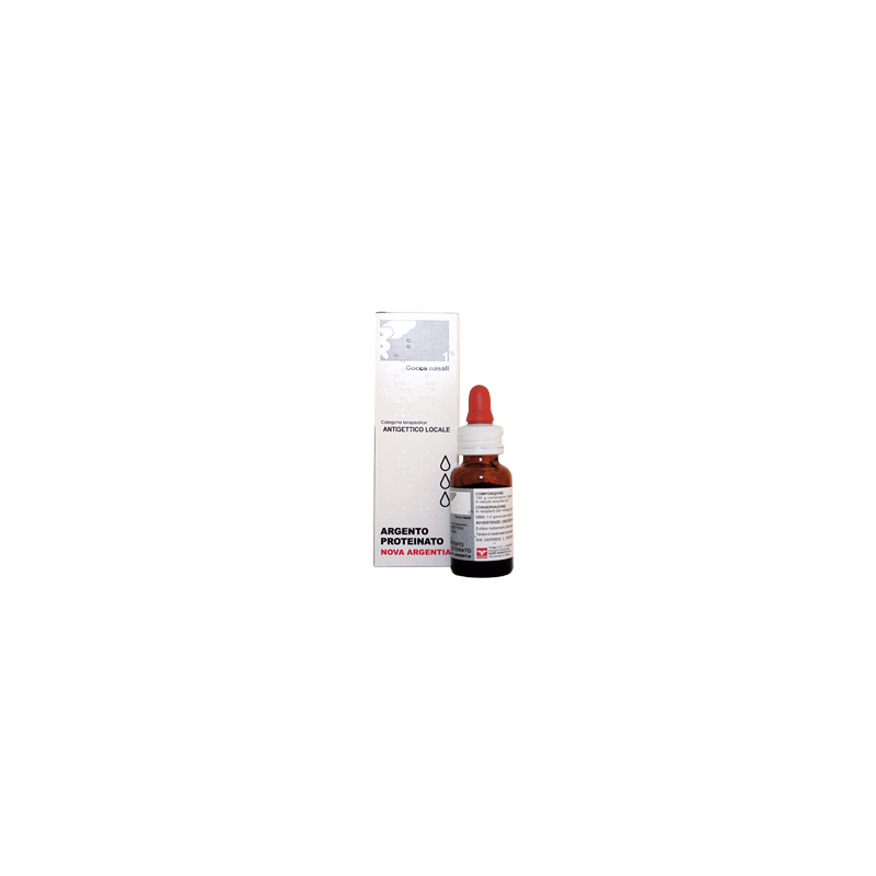 ARGENTO PROTEINATO NOVA ARGENTIA 0,5% gocce nasali e auricolari, soluzione 100 g di soluzione contengono: Principio attivo: argento proteinato g 0,50. ARGENTO PROTEINATO NOVA ARGENTIA 1% gocce nasali e auricolari, soluzione 100 g di soluzione contengono: Principio attivo: argento proteinato g 1,00. ARGENTO PROTEINATO NOVA ARGENTIA 2% gocce nasali e auricolari, soluzione 100 g di soluzione contengono: Principio attivo: argento proteinato g 2,00. Per l’elenco completo degli eccipienti vedere paragrafo 6.1.