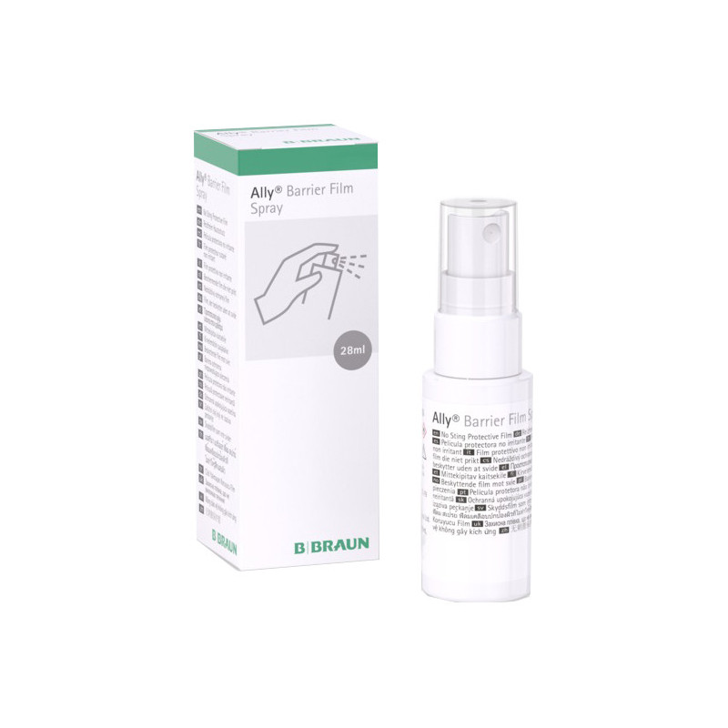 Descrizione Dispositivo Medico di classe I. Spray che crea un film protettivo per la cute peristomale e perilesionale, a base di silicone. Privo di alcool, può essere utilizzato su cute lesa o danneggiata senza provocare bruciore o fastidi. Il film è trasparente (per permettere il controllo visivo della cute) e permeabile all'ossigeno e all'umidità.