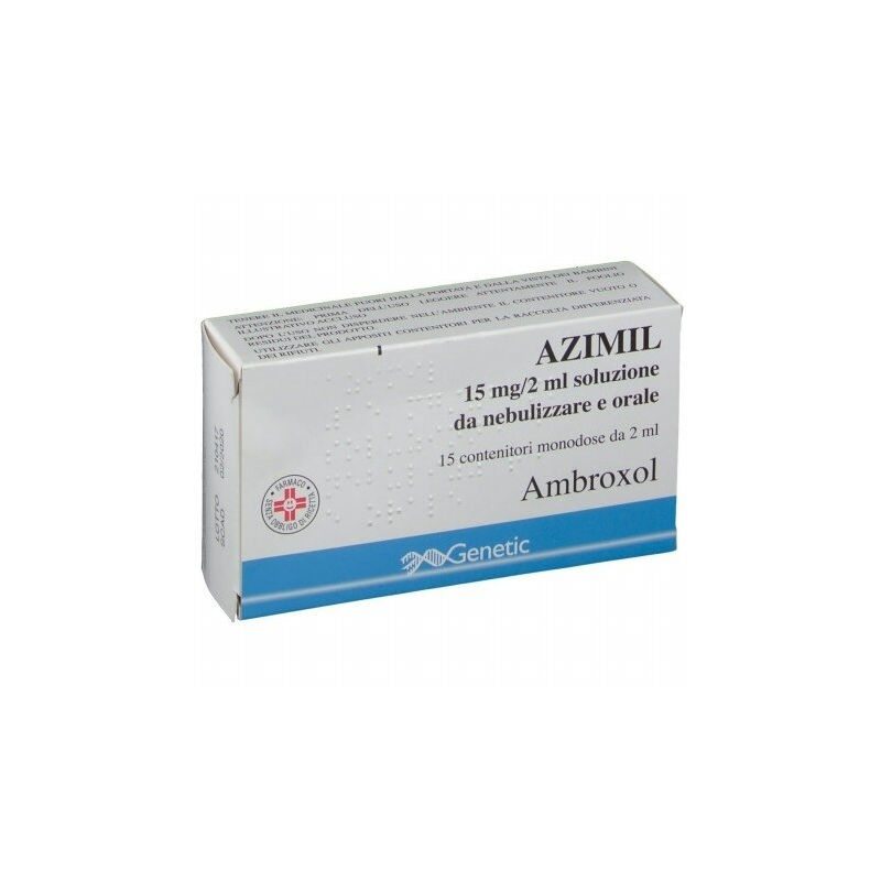 AZIMIL 15 mg/2 ml soluzione da nebulizzare e oraleUn contenitore monodose contiene: Principio attivo: Ambroxolo cloridrato 15 mg. AZIMIL 15 mg/5 ml sciroppo in contenitore monodoseUn contenitore monodose contiene: Principio attivo: Ambroxolo cloridrato 15 mg. AZIMIL 15 mg/5 ml sciroppo multidose 200 ml 5 ml di sciroppo contengono: Principio attivo: Ambroxolo cloridrato 15 mg Per l’elenco completo degli eccipienti vedere paragrafo 6.1.