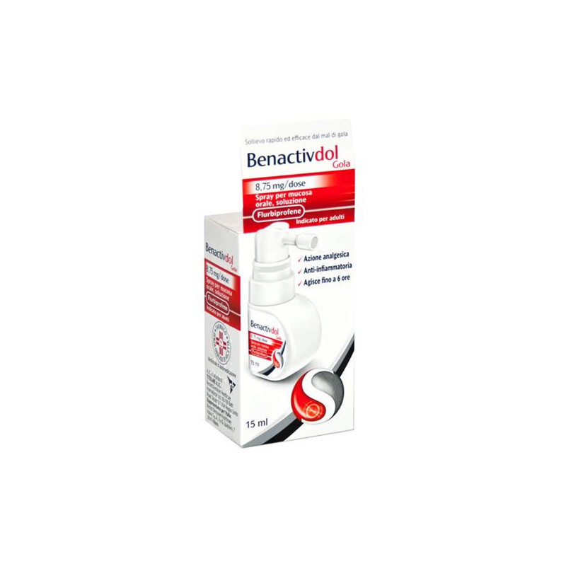 Posologia Solo per trattamenti di breve durata. Indicato per adulti di età superiore ai 18 anni: Una dose (3 erogazioni) indirizzata sulla parte interessata della gola ogni 3-6 ore a seconda della necessità, fino ad un massimo di 5 dosi in un periodo di 24 ore. Popolazione pediatrica La sicurezza e l’efficacia di Benactivdol Gola nei bambini o adolescenti di età inferiore ai 18 anni non sono state stabilite. Popolazione anziana Una raccomandazione posologica generale non può essere fornita, poiché ad oggi l’esperienza clinica è limitata. Gli anziani presentano un aumentato rischio di gravi conseguenze in caso di reazioni avverse. Deve essere somministrata la più bassa dose efficace per la più breve durata possibile di trattamento per controllare i sintomi (vedere paragrafo 4.4). Modo di somministrazione Per somministrazione oromucosale Non inalare durante l’erogazione. Questo medicinale non deve essere utilizzato per più di 3 giorni. Prima dell’uso, è necessario azionare 4 volte la pompa, puntando l’erogatore lontano dal proprio corpo, fino ad ottenere il rilascio di una nebulizzazione uniforme e consistente. La pompa è quindi pronta per l’uso. Tra un utilizzo e l’altro erogare una quantità minima di prodotto, lontano dal proprio corpo, al fine di assicurarsi che la nebulizzazione sia uniforme e consistente. Prima dell’uso del prodotto assicurarsi sempre che la nebulizzazione sia uniforme e consistente.