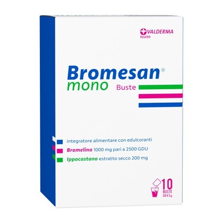 Descrizione Integratore alimentare che apporta, in un'unica somministrazione giornaliera, 1.000 mg di bromelina corrispondenti a un'attività enzimatica di 2.500 GDU (Unità di Digestione della Gelatina) e 200 mg di estratto secco di ippocastano titolato in escina (36-44 mg). Gusto agrumi. Con edulcoranti.