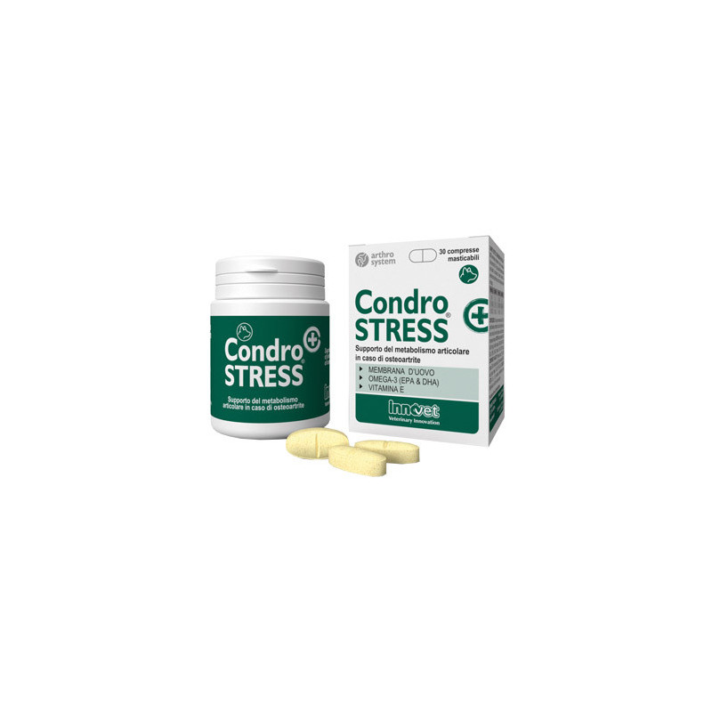 Descrizione Supporto del metabolismo articolare in caso di osteoartrite. Condostress+ è indicato per cani di qualsiasi età affetti da osteoartrite primaria o secondaria. Nell'animale anziano, in particolare, preserva la capacità di movimento e migliora di conseguenza la qualità di vita.