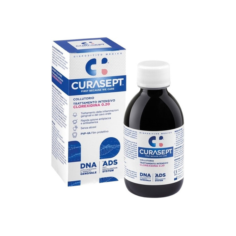 Descrizione Collutorio trattamento intensivo delle infiammazioni gengivali e del cavo orale a rapida azione antiplacca e antibatterica. Senza alcool. Grazie alla presenza del PVP-VA copolymer forma una pellicola protettiva sui denti e sulle gengive contribuendo, con una azione meccanica, ad alleviare i sintomi provocati da irritazioni della mucosa orale. Impedisce, inoltre, con lo stesso meccanismo, la formazione e la deposizione di placca dentale. La presenza di clorexidina digluconato 0,2% assicura anche un'efficace azione antisettica sulla componente filmogena. La presenza di frazioni di DNA aumenta la viscosità delle soluzione e aumenta l'idratazione delle mucose con conseguente miglioramento del trofismo. Agisce localmente e non provoca bruciore. Se ne consiglia l'uso in caso di: - gengive delicate e facilmente sanguinanti; - irritazione e arrossamento di mucose e gengive; - irritazioni della lingua; - irritazioni da alimenti duri, piccanti o molto caldi. Indicato per rallentare ed ostacolare la formazione della placca batterica e per prevenire e trattare le infiammazioni delle gengive e del cavo orale, anche in soggetti portatori di protesi, di impianti ortodontici, dopo interventi chirurgici parodontali, inserimento di impianti, dopo estrazioni dentarie. Prima e dopo qualsiasi intervento odontoiatrico.