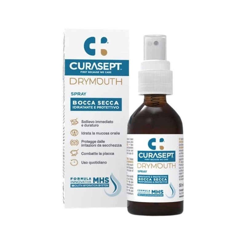 Descrizione Spray. Indicato per chi soffre di bocca secca. Grazie alla formula arricchita con MHS (Mouth Hydration System), un mix equilibrato di sostanze idratanti, dona una prolungata sensazione di benessere a tutto il cavo orale, soprattutto in caso di secchezza. Favorisce la protezione del cavo orale, riducendo il rischio di carie e stimolando l'idratazione delle mucose orali. Ideale per l'utilizzo fuori casa. - sollievo immediato e duraturo. - idrata la mucosa orale. - protegge dalle irritazioni dovute alla secchezza. - combatte la placca. Estratto di Aloe Barbadensis, Pantenolo, Betaina, Colostro, Xilitolo, Lisozima, Zinco, Vitamina E e Cimmenolo.