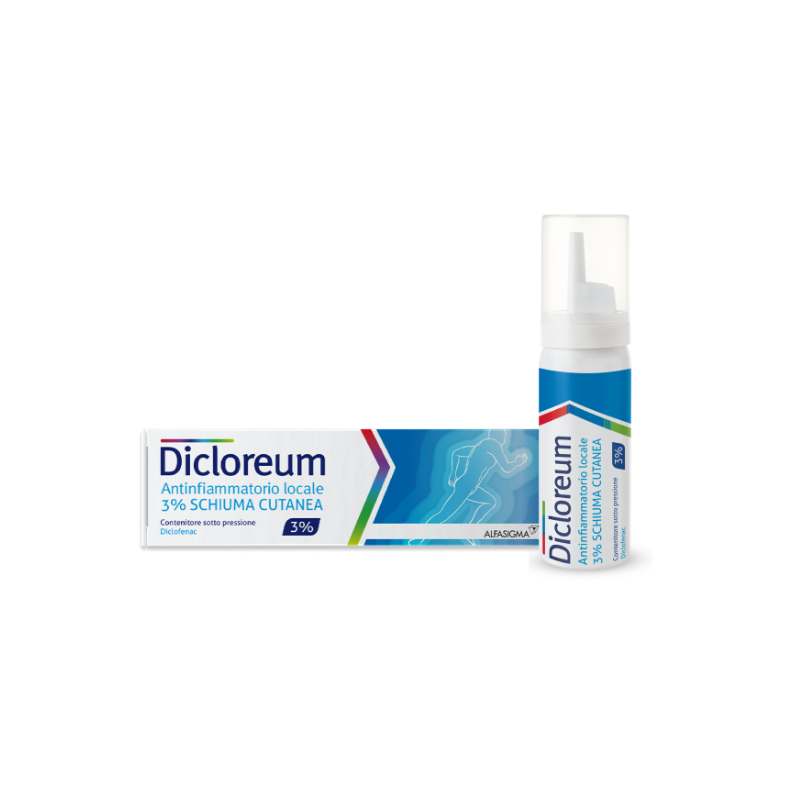 Adulti al di sopra dei 18 anni: Applicare DICLOREUM ANTINFIAMMATORIO LOCALE 1-3 volte al giorno o secondo prescrizione medica. Per ogni applicazione spruzzare sul palmo della mano, a seconda delle dimensioni della zona da trattare, una massa circolare di schiuma di 3-5 centimetri di diametro (pari a circa 0,75-1,5 grammi in peso) massaggiando delicatamente fino a completo assorbimento. In caso di trattamento per ionoforesi il prodotto deve essere applicato al polo negativo. DICLOREUM ANTINFIAMMATORIO LOCALE può essere inoltre usato in combinazione con la terapia ad ultrasuoni. Dopo l’applicazione, lavarsi le mani, altrimenti risulteranno anch’esse trattate con la schiuma cutanea. Attenzione: usare solo per brevi periodi di trattamento. Adolescenti dai 14 ai 18 anni: Applicare DICLOREUM ANTINFIAMMATORIO LOCALE 1-3 volte al giorno o secondo prescrizione medica. Per ogni applicazione spruzzare sul palmo della mano, a seconda delle dimensioni della zona da trattare, una massa circolare di schiuma di 3-5 centimetri di diametro (pari a circa 0,75-1,5 grammi in peso) massaggiando delicatamente fino a completo assorbimento. In caso di trattamento per ionoforesi il prodotto deve essere applicato al polo negativo. DICLOREUM ANTINFIAMMATORIO LOCALE può essere inoltre usato in combinazione con la terapia ad ultrasuoni. Dopo l’applicazione, lavarsi le mani, altrimenti risulteranno anch’esse trattate con la schiuma cutanea. Se questo medicinale è necessario per più di 7 giorni per alleviare il dolore o se i sintomi peggiorano, consultare il medico. Bambini ed adolescenti al di sotto dei 14 anni: Sono disponibili dati insufficienti sull'efficacia e la sicurezza nei bambini e negli adolescenti al di sotto dei 14 anni (vedere anche la sezione 4.3 Controindicazioni). Pertanto, l’uso di DICLOREUM ANTINFIAMMATORIO LOCALE è controindicato nei bambini al di sotto dei 14 anni di età. Anziani: Può essere impiegato il dosaggio abituale previsto per gli adulti. Modalità d’uso: Agitare prima dell’uso. Tenendo la bomboletta capovolta, erogare la quantità desiderata premendo l’apposito erogatore.