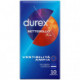 Avvertenze Questo preservativo è realizzato in lattice di gomma naturale. Nel caso in cui l'utilizzatore sia allergico al lattice, non utilizzare questo preservativo, in quanto potrebbe causare reazioni allergiche fra cui shock anafilattico. NTERROMPERE L’UTILIZZO: se si avverte fastidio o irritazione durante l’utilizzo del preservativo. Il preservativo è monouso. Il riutilizzo può aumentare il rischio di infezioni o gravidanze indesiderate. I preservativi possono causare rischio di soffocamento. Tenere fuori dalla portata dei bambini. In caso di sesso orale, durante i preliminari, utilizzare un nuovo preservativo per le fasi successive del rapporto. Utilizzare solo lubrificanti consigliati per l’uso combinato con i preservativi. I lubrificanti a base oleosa (derivati del petrolio, oli per bambini e ovuli vaginali) ed alcuni medicinali topici che vengono applicati sul pene o sulla vagina possono danneggiare il preservativo. In caso di sesso anale applicare in aggiunta un lubrificante sulla parte esterna del preservativo (non utilizzare il gel lubrificante Durex Fresh). Rivolgersi ad un medico o ad un farmacista in caso di possibile allergia al lattice, irritazione o fastidio persistente dopo l’uso o se si utilizzano medicinali topici sul pene o sulla vagina. In caso di perdite o rottura del preservativo durante l’uso o sensazione di bruciore durante il rapporto, consultare un medico o un farmacista il prima possibile ed entro 72 ore. Incidenti gravi devono essere riportati a Reckitt e alle autorità locali competenti, le quali provvederanno a fornire ulteriori istruzioni.