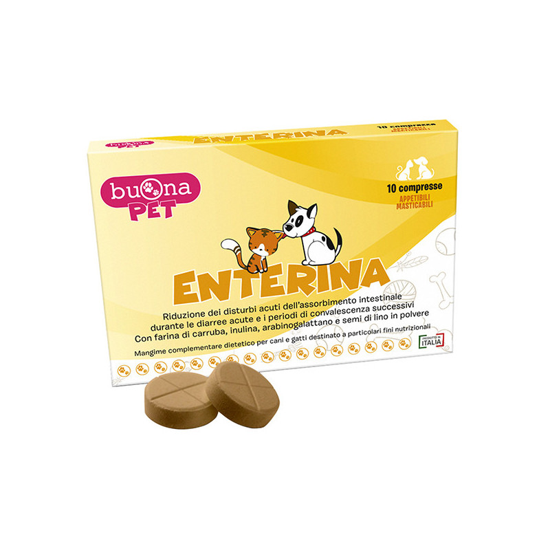 ENTERINA è formulato con un accresciuto livello di elettroliti ed ingredienti ad elevata digeribilità; contiene farina di carruba, inulina da radici di cicoria, arabinogalattano da corteccia di larice, semi di lino in polvere, bentonite, zinco ed Enterococcus faecium come additivo stabilizzatore della flora intestinale nel cane e nel gatto.