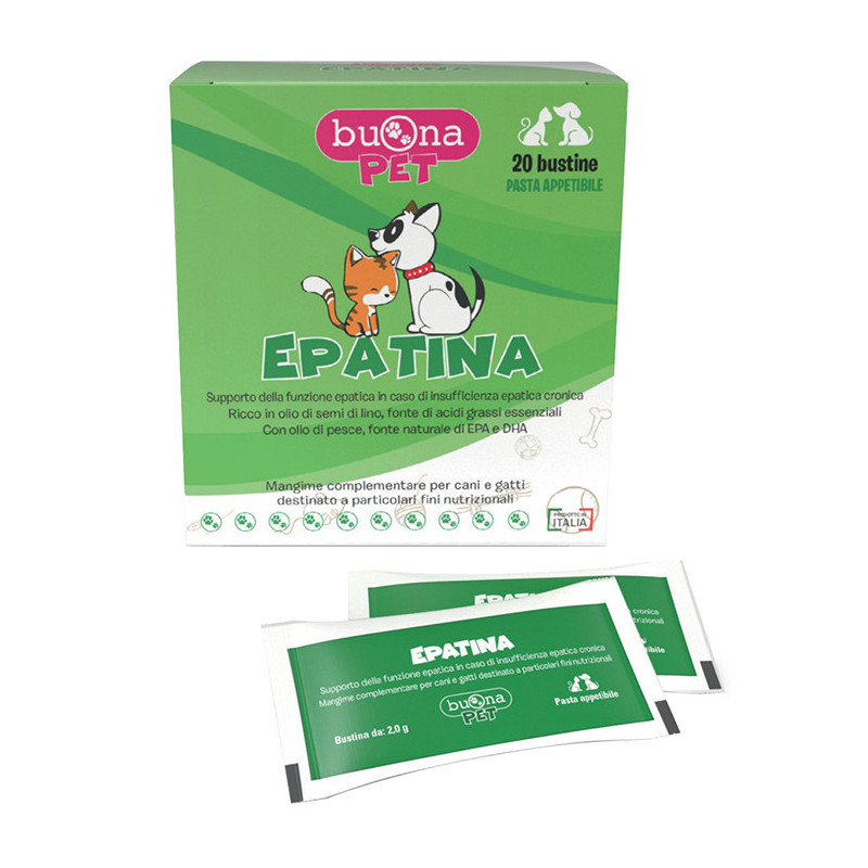 EPATINA è formulato in pasta appetibile con olio di semi di lino, Colina cloruro, Vitamina E, Selenio ed estratto di Cardo mariano.