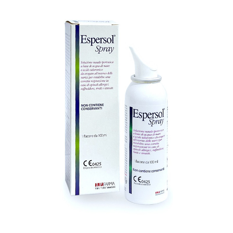 Descrizione Soluzione nasale ipertonica a base di acqua di mare e acido ialuronico da erogare all'interno delle narici per ristabilire una corretta respirazione in caso di episodi allergici, raffreddore, riniti e sinusiti. Non sostituisce la terapia medica ma ne rappresenta un utile prodotto complementare. Per un'azione più completa si consiglia di abbinare dei lavafggi nasali da effettuarsi con Espersol Soluzione nebulizzante. Non contiene conservanti. Rispetta lo strato di ozono e il suo sistema di erogazione consente l'utilizzo in ogni posizione.
