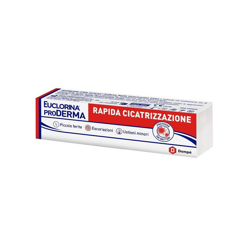 Descrizione Dispositivo medico in crema indicata nel trattamento sia di piccole ferite, ustioni minori, tagli e abrasioni (es. escoriazioni), che di ulcere e piaghe. Euclorina ProDerma Crema crea un'efficace barriera protettiva contro le aggressioni microbiche e favorisce i naturali processi di rigenerazione tissutale, per una rapida cicatrizzazione. L’acido ialuronico favorisce l’idratazione dei tessuti. Il dimeticone ha un elevato potere filmogeno e protettivo. Grazie alle sue proprietà antimicrobiche, il complesso brevettato SCX (costituito da biossido di silicio funzionalizzato con ioni argento e clorexidina) garantisce la difesa dagli agenti microbici esterni.