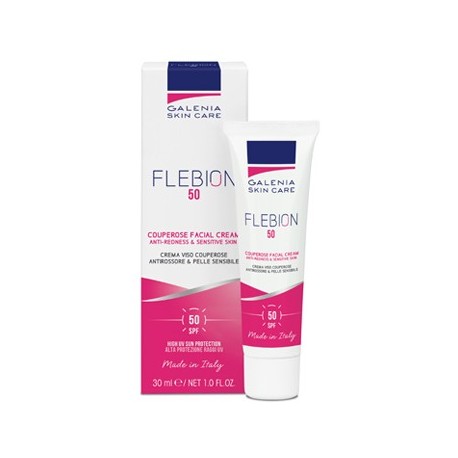 Descrizione Crema viso indicata nel periodo estivo per la correzione di: couperose, rosacea, flushing, teleangectasie. Flebion 50 protegge dai raggi solari, prevenendo macchie e foto invecchiamento. La ricca e morbida texture nutre in profondità la pelle senza ungere, rendendola elastica e compatta e proteggendola dagli agenti esterni. L'uso regolare del prodotto agisce su arrossamenti e couperose, contribuendo a ridurre la fragilità dei capillari. Crema di colore verde per una pronta correzione cosmetica del rossore. Nickel tested. Dermatologicamente testato.