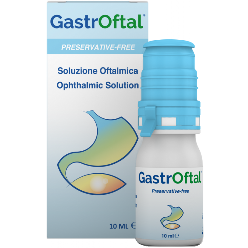 Gastroftal, grazie alla sinergica associazione di acido ialuronico, alginato di magnesio e di estratto di Camellia sinensis (tè verde), idrata, lubrifica e protegge la superficie oculare sia da agenti esterni (es.: raggi ultravioletti, vento, polvere, smog, lenti a contatto, etc.), che da sostanze endogene, come, ad esempio, gli enzimi proteolitici (pepsina) che si associano a patologia da reflusso gastro-esofageo.