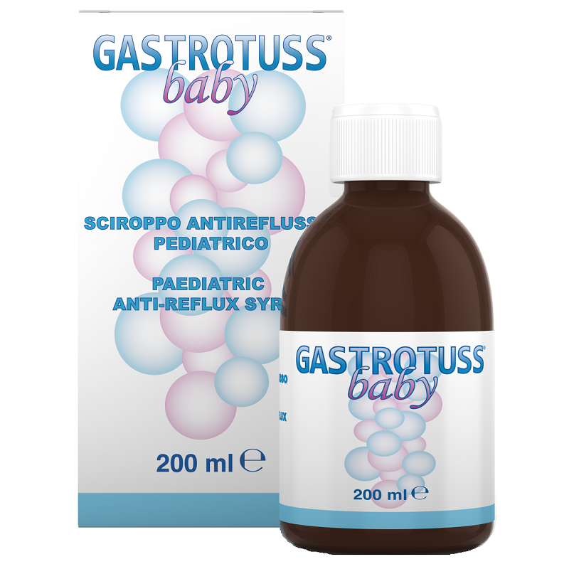 Descrizione Dispositivo medico ad azione meccanica per il trattamento del reflusso gastroesofageo e/o faringolaringeo nei neonati e nei bambini, al fine di ridurre i sintomi e segni ad esso correlati quali ad esempio: rigurgito acido o basico, pirosi (bruciore di stomaco), globo ipofaringeo (sensazione di corpo estraneo in gola), infiammazione rinofaringolaringea, eruttazione, senso di tensione addominale, tosse, disfonia (alterazione della voce), e in tutti i casi di disturbi che abbiano come causa principale o concausa il reflusso gastroesofageo e/o faringolaringeo. GASTROTUSS BABY è coadiuvante i processi di riepitelizzazione della mucosa gastroesofagea e faringolaringea. Riduce il tempo di permanenza del contenuto gastrico nello stomaco. Uso orale.