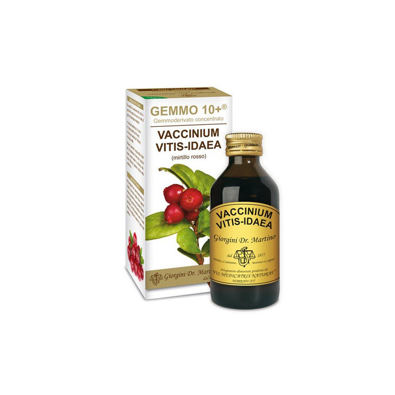 Descrizione Integratore alimentare a base di gemmoderivati concentrati di mirtillo rosso. I Gemmo 10+, preparati con il metodo inventato dal Dr. Giorgini, offrono al consumatore dei gemmoderivati concentrati contenenti l'intero fitocomplesso delle piante. Tutti i Gemmo 10+ sono ottenuti utilizzando solo tessuti meristematici freschi, cioè tessuti embrionali in via di accrescimento. Le gemme, i giovani getti, le giovani radici, le scorze dei giovani rami o la linfa delle piante vengono raccolte in primavera e lavorate nella stessa giornata per mantenere inalterata la loro freschezza. Lo speciale metodo di lavorazione a freddo permette di estrarre e preservare integri tutti i principi attivi e nutritivi dei tessuti embrionali delle piante. Tutti i Gemmo 10+ sono naturali al 100% e non contengono: zuccheri aggiunti, alcool, conservanti, aromi ed edulcoranti artificiali. A differenza dei comuni gemmoderivati, i Gemmo 10+ del Dr. Giorgini hanno un rapporto di estrazione finale di 1:10, cioè da 1 kg di tessuti meristematici freschi si ottengono 10 litri di prodotto concentrato. In più, i Gemmo 10+ sono analcoolici (senza alcool) e dal sapore molto gradevole, adatto anche ai bambini. Sostiene la salute delle vie urinarie. È utile in caso di infezioni e svolge una funzione anti-invecchiamento; per la donna. Prodotto adatto ai vegani.