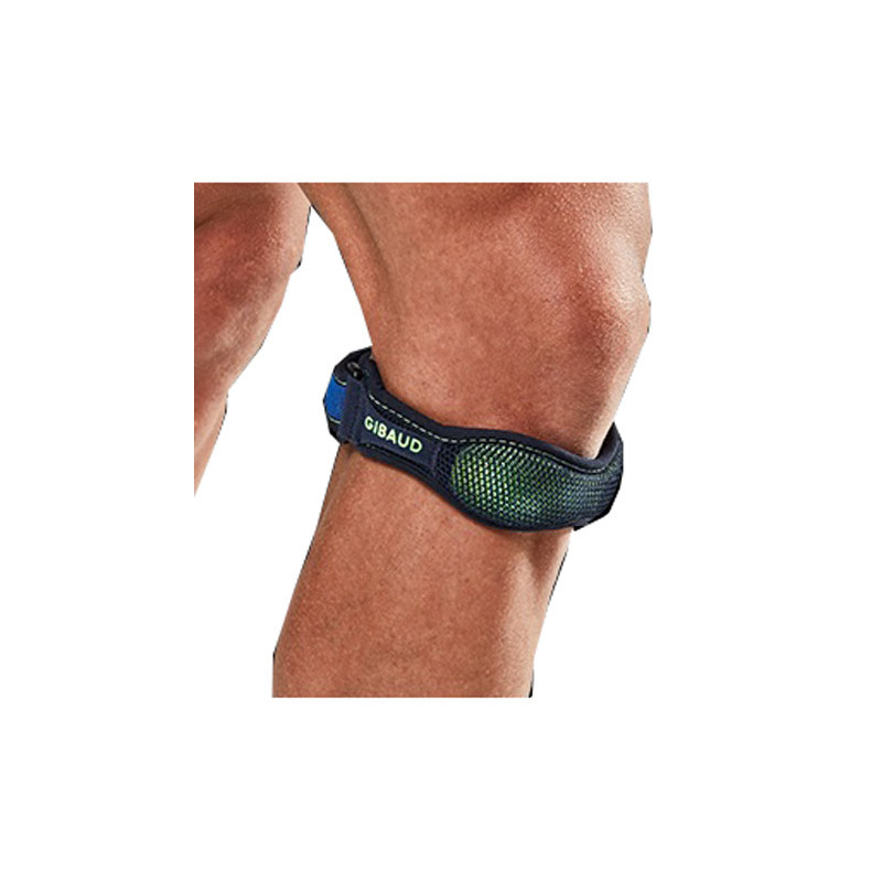 Modalità d'uso Posizionare il pressore in corrispondenza del tendine rotuleo (appena sotto il ginocchio), inserire la cinghia nella fibbia e fissare con la chiusura a strappo.