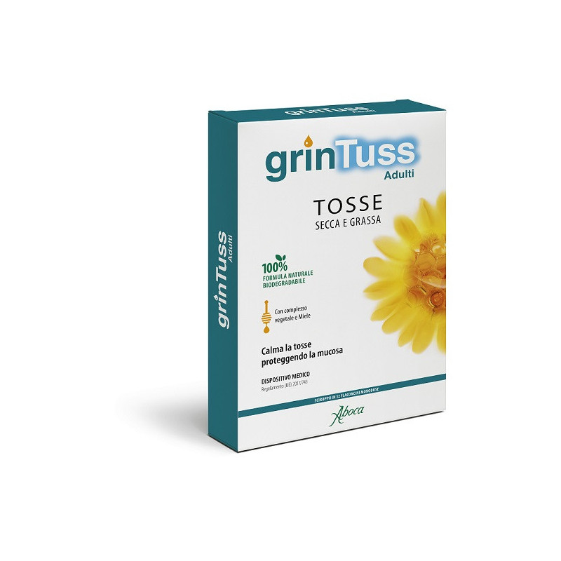Grintuss Adulti sciroppo, grazie alla sua composizione e al suo meccanismo di azione fisiologico, calma la tosse nel rispetto dell’organismo e dell’ambiente.