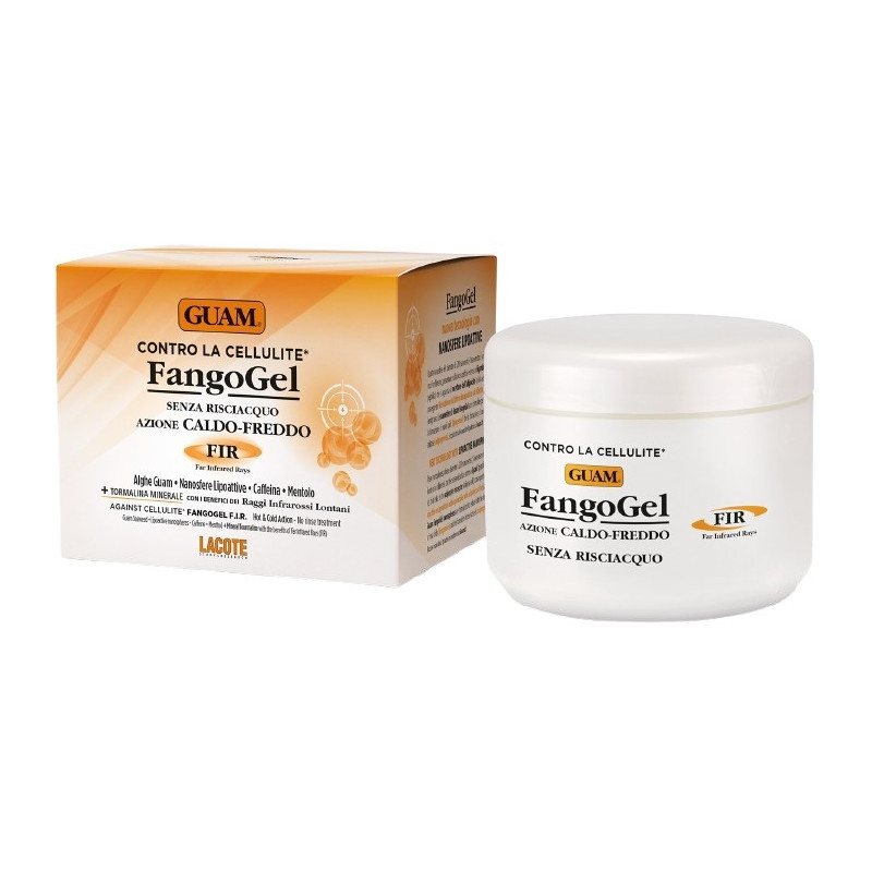 Fangogel nuova tecnologia con nanosfere attive. Queste nanosfere del diametro di 220 nanometri (1 nanometro è un milionesimo di millimetro), presentano sulla loro superficie esterna un ligando (struttura peptidica) che si aggancia al recettore dell'adipocita (cellula adiposa) con conseguente liberazione dell'attivo incapsulato ad effetto lipolitico (antigrasso). Le nanosfere di guam fangogel sono formulate per ridurre sia la formazione di nuovi lipidi (lipogenesi) che la formazione di nuove cellule adipose (adipogenesi).