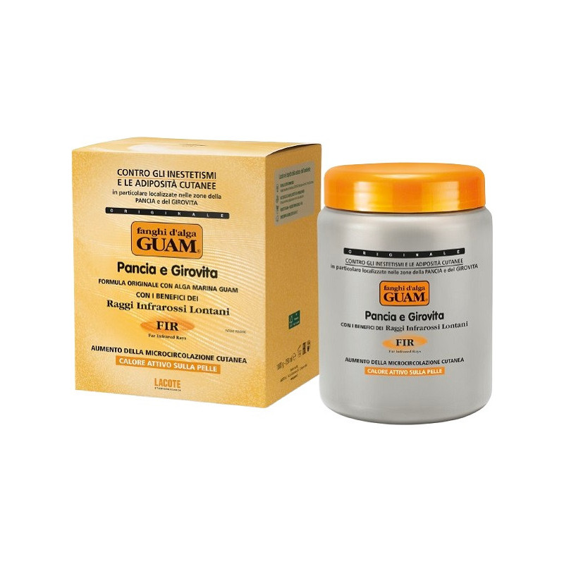 Fanghi d'alga guam guam pancia e girovita vero concentrato d'alga con i benefici dei raggi infrarossi fir e tormalina pura micronizzata. 1 kg di fanghi d'alga guam contiene una concentrazione elevata di puro estratto d'alga corrispondente a circa 1 kg d'alga marina fresca. Le alghe marine, ricche di proprietà i cui benefici sono riconosciuti dal mondo scientifico sono un vero concentrato di mare e contengono: protidi, lipidi, glucidi, mannitolo, cloro, fosforo, zolfo, iodio. sodio, potassio, calcio, magnesio, zinco, cobalto, ferro, manganese, boro, silicio. Vitamine: beta. Carotene (pro vit. A); acido ascorbico (Vit. C); vitamine complesso B. Prodotto cosmetico. Dermatologicamente testato