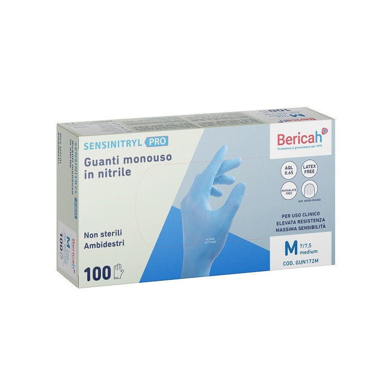 Descrizione Guanti monouso in nitrile non sterili, senza polvere. Senza lattice e senza ftalati, preserva da possibili reazioni allergiche correlate alle proteine del lattice di gomma naturale. Di colore blu, ambidestri con polsino salvastrappo. Superficie micro-ruvida che garantisce la massima sensibilità ed una presa migliore. Ottima resistenza chimica a disinfettanti e principali sostanze utilizzate in ambito chimico/farmaceutico. Il guanto deve essere indossato prima dell'inizio dell'attività operativa. La scelta del guanto deve essere basata sulla conoscenza dell'attività lavorativa e del processo di lavorazione dell'operatore, tenendo conto delle condizioni di lavoro e dei rischi associati. Conservare la confezione per ulteriori informazioni e garantire la rintracciabilità. Il prodotto non necessita di utilizzo di schede di sicurezza. Indicato per proteggere l’utilizzatore e il paziente dai rischi biologici derivanti dalla contaminazione microbica e dalla contaminazione da agenti chimici in ambito clinico (esaminazione, esplorazione, terapia, diagnostica) dentale, farmaceutico, chimico. Conforme all’uso in qualsiasi tipologia di paziente allergico al lattice. Non indicato per utilizzatori/pazienti allergici al nitrile.