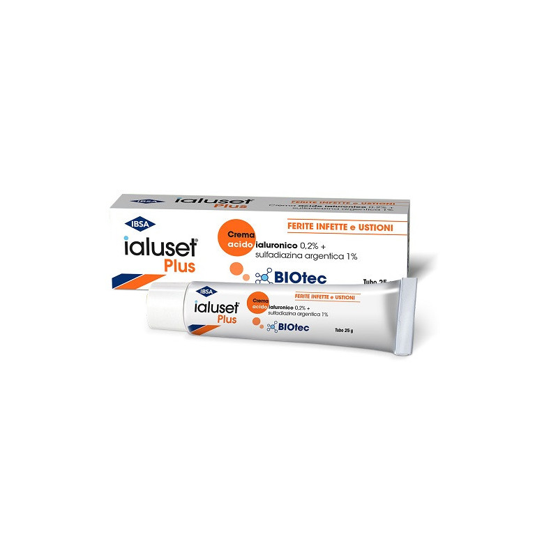 Avvertenze In casi molto rari, sono state osservate reazioni di ipersensibilità locali come l’eczema. Eventuali incidenti gravi verificatisi in relazione al dispositivo devono essere segnalati al produttore e all’autorità nazionale competente. Non utilizzare in caso di ipersensibilità nota ai sulfamidici, generale o topici (eczema da contatto), all’acido ialuronico o a uno dei componenti di ialuset Plus crema e garze. A causa dei dati insufficienti a disposizione nell’uomo, l’utilizzo di ialuset Plus è sconsigliato nei bambini di età inferiore ai 2 anni di età. - Attenersi ai metodi idonei di pulizia e disinfezione delle ferite, delle ustioni e della cute circostante. L’uso di ialuset Plus in combinazione con detergenti enzimatici non è stato valutato. - Evitare di esporre al sole le parti del corpo trattate con ialuset® Plus (a causa del rischio di fotosensibilità). Può comparire una colorazione transitoria del letto della ferita, che si può eliminare con un semplice lavaggio. - Nei pazienti affetti da insufficienza renale o epatica, evitare l’applicazione del prodotto sulle ferite aperte. - Bambini: ialuset Plus deve essere usato con cautela nei bambini di età superiore ai 2 anni. La durata del trattamento non deve superare 15 giorni senza aver consultato un medico. - Tenere lontano dalla portata dei bambini. - Non ingerire. - Crema: Chiudere accuratamente il tubo dopo ogni utilizzo. Non applicare l’estremità del tubo direttamente sulla ferita. - Garze impregnate sterili monouso (sterilizzate a raggi Beta): non riutilizzare per evitare il rischio di contaminazione. - Non usare se la confezione risulta danneggiata. - I prodotti scaduti o inutilizzati non vanno gettati, ma smaltiti presso la propria farmacia di fiducia. - Gravidanza e allattamento: ialuset Plus deve essere impiegato da donne in gravidanza e allattamento solo se strettamente necessario.