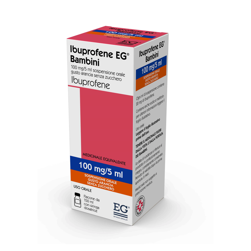 IBUPROFENE EG Bambini 100mg/5ml sospensione orale gusto fragola senza zucchero Acido citrico monoidrato, sodio citrato, acesulfame di potassio, gomma xantana, sodio benzoato, aroma fragola, sciroppo di maltitolo, glicerina, acqua depurata. IBUPROFENE EG Bambini 100mg/5ml sospensione orale gusto arancia senza zucchero Acido citrico monoidrato, sodio citrato, acesulfame di potassio, gomma xantana, sodio benzoato, aroma arancia, sciroppo di maltitolo, glicerina, acqua depurata.