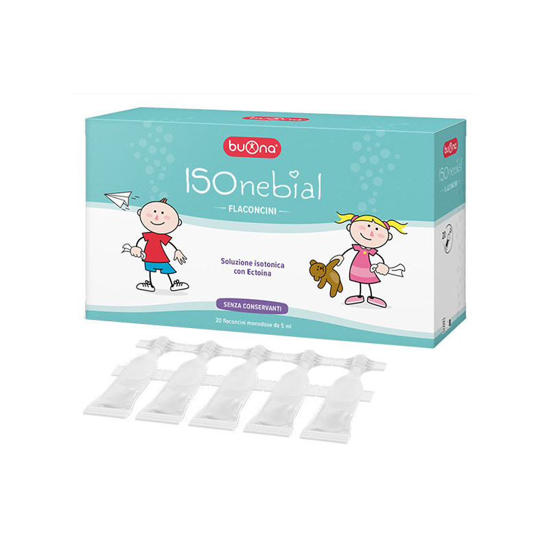 Descrizione La soluzione isotonica, contenuta in Isonebial flaconcini, è consigliata per la pulizia quotidiana delle fosse nasali. I flaconcini monodose di Isonebial sono indicati per la delicata detersione quotidiana del naso e favoriscono una migliore respirazione, soprattutto in neonati e bambini che ancora non sono in grado di soffiarsi il naso. Un lavaggio regolare del naso può facilitare la poppata nel neonato ed il sonno anche nei bambini più grandi. Isonebial flaconcini è adatto anche per un uso prolungato. La soluzione contenuta nei flaconcini monodose è pronta all’uso e può essere utilizzata anche per aerosol terapia. Isonebial flaconcini è composto da una soluzione isotonica (allo 0,9%) con aggiunta di ectoina, pronta all’uso. La soluzione isotonica ammorbidisce il muco favorendone l’eliminazione e migliorando la respirazione. Esercita inoltre una funzione di detersione della mucosa nasale in quanto promuove l’eliminazione di batteri, allergeni e agenti inquinanti presenti nell’aria, aiutando a mantenere le vie respiratorie in salute.