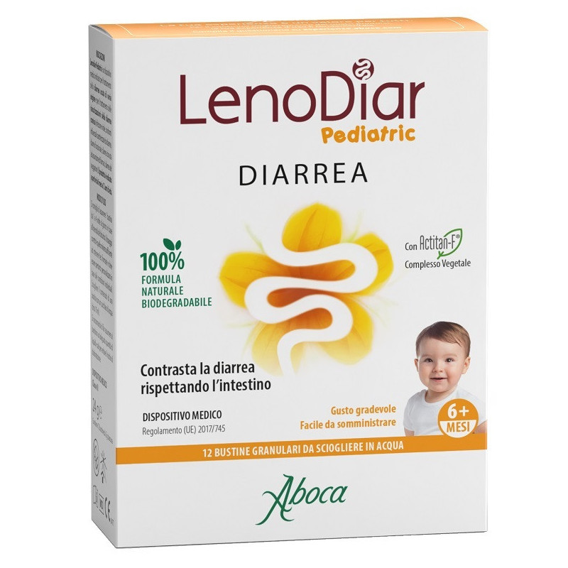 Descrizione Dispositivo medico indicato per il trattamento della diarrea acuta e delle riacutizzazioni della diarrea cronica. Il prodotto riduce la frequenza delle scariche diarroiche rispettando la funzionalità dell’intestino. La diarrea, dovuta a cause di diversa origine, è una condizione caratterizzata da un aumento della secrezione e/o da un ridotto assorbimento dei liquidi e da un’aumentata motilità intestinale; tutto questo si può associare ad uno stato di irritazione e di infiammazione della mucosa intestinale. Oltre al disagio e al dolore, la diarrea presenta il rischio di disidratazione, la perdita di vitamine e minerali e uno squilibrio della flora batterica intestinale. Lenodiar Pediatric contiene Actitan-F complesso vegetale frutto della ricerca Aboca. Il prodotto, attraverso la sua azione fisiologica, normalizza la consistenza delle feci, riduce la frequenza delle scariche diarroiche e l’infiammazione della mucosa intestinale, come risultato dei seguenti meccanismi di azione: Astringente: interagisce in modo aspecifico con le proteine del muco e della mucosa intestinale aumentando la consistenza fecale e formando un film muco-adesivo che favorisce: • la protezione della mucosa da irritanti, mediatori infiammatori e microrganismi; • il ripristino dell’integrità della mucosa, quando danneggiata. Antiossidante: contrasta l’azione dei radicali liberi, proteggendo la mucosa dal danno ossidativo. Grazie alla sinergia delle sue azioni, Lenodiar Pediatric favorisce il recupero della funzionalità intestinale e, di conseguenza, l’equilibrio della flora batterica (microbiota). Il beneficio è stato riscontrato entro qualche ora dal suo utilizzo e nella maggioranza dei casi, entro le 12 ore.