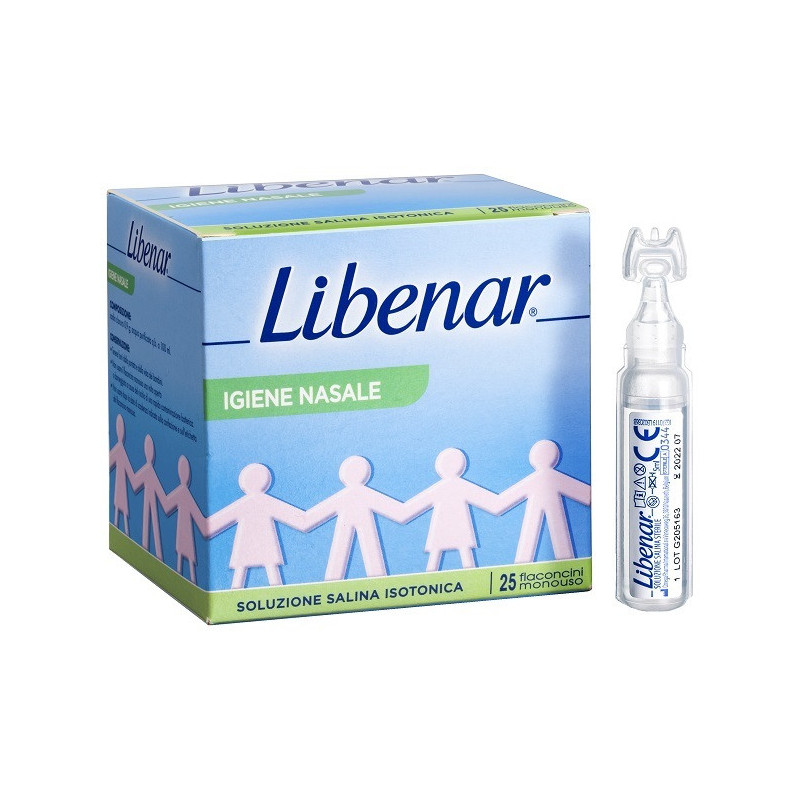 Descrizione Soluzione salina isotonica 0,9%. Libenar flaconcini sono adatti a neonati, bambini e adulti: - per l'igiene nasale: mediante instillazione o pulizia (lavaggio) in caso di naso secco o congestionato; - per l'igiene oculare: per instillazione, detersione o bagno; - per l'igiene auricolare; - per la pulizia delle ferite; - per inalazione in aerosolterapia.