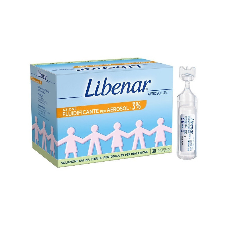 Descrizione Soluzione salina ipertonica sterile al 3%, è indicato per facilitare l’eliminazione di muco e secrezioni e prevenire la secchezza della mucosa bronchiale. Utile anche in caso di fibrosi cistica, bronchiectasia e bronchiolite. L’uso in aerosolterapia di Libenar Aerosol: - fuidifica le secrezioni nel tratto respiratorio inferiore per effetto osmotico, per esempio nei casi di fibrosi cistica, bronchiectasie e bronchioliti; - previene la secchezza della mucosa bronchiale. Questa soluzione salina ipertonica al 3% per inalazione può essere utilizzata con nebulizzatori pneumatici o a ultrasuoni. Si raccomanda di seguire le istruzioni d’uso del fabbricante fornite con l’apparecchio.