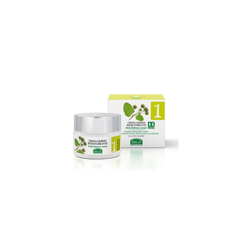 La formula della Crema Giorno Riequilibrante contiene gli estratti di Bardana, Hamamelis, Salvia e l'olio essenziale di Limone che, con la loro azione purificante e astringente, favoriscono l'azione riequilibrante.
