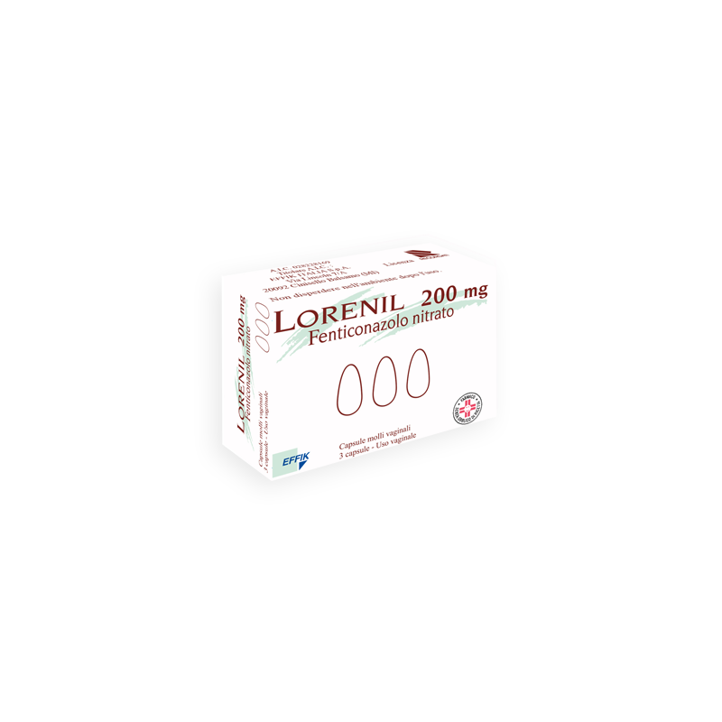LORENIL 200 mg Capsule molli vaginali Ogni capsula molle contiene: fenticonazolo nitrato 200 mg. Per l’elenco completo degli eccipienti vedere paragrafo 6.1 LORENIL 600 mg Capsule molli vaginali Ogni capsula molle contiene: fenticonazolo nitrato 600 mg. Per l’elenco completo degli eccipienti vedere paragrafo 6.1.