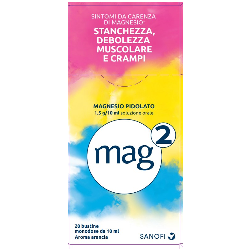In caso di concomitante carenza di calcio, la carenza di magnesio deve essere corretta prima di somministrare calcio supplementare. In pazienti con insufficienza renale moderata è necessario ridurre la posologia e monitorare la funzionalità renale e la magnesemia, a causa del rischio associato all’ipermagnesemia. È opportuno considerare la possibilità che in corso di trattamento si verifichi depressione dell’attività cardiovascolare. Ogni flaconcino di MAG2 soluzione contiene 3,5 g di saccarosio. Ogni bustina monodose di soluzione di MAG2 contiene 3,5 g di saccarosio. Ogni bustina di MAG2 polvere contiene 2,985 g di saccarosio. Se preso in accordo con la dose consigliata, l’assunzione giornaliera di saccarosio corrisponde a 10,5 g per i flaconcini e le bustine monodose di soluzione e 5,97 g per le bustine di polvere. I pazienti affetti da rari problemi ereditari di intolleranza al fruttosio, da malassorbimento di glucosio-galattosio, o da insufficienza di sucrasi-isomaltasi, non devono assumere questo medicinale. MAG2 soluzione orale contiene paraidrossibenzoati (metile paraidrossibenzoato sodico e propile paraidrossibenzoato sodico): può causare reazioni allergiche (anche ritardate). MAG2 flaconcini, bustine monodose di soluzione e polvere per soluzione orale contengono meno di 1 mmol (23 mg) di sodio per flaconcino o bustina, cioè sono essenzialmente “senza sodio”.