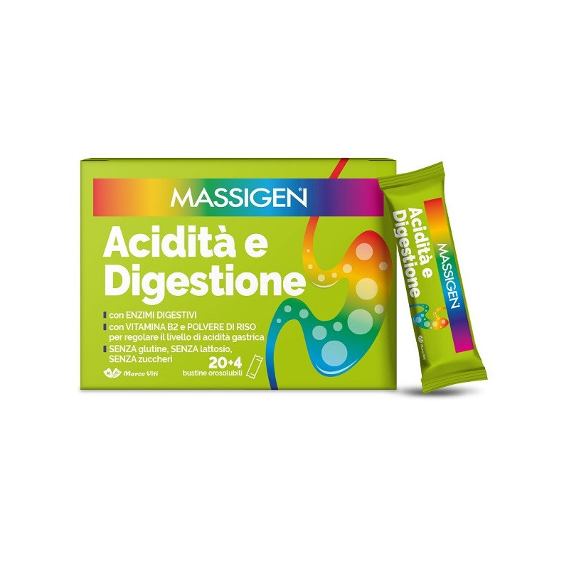 Descrizione Integratore alimentare con enzimi digestivi, vitamina B2 e polvere di riso per regolare il livello di acidità gastrica.