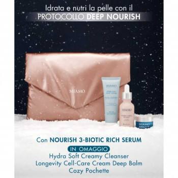 Cofanetto da: 1 tubetto hydra soft creamy cleanser 50 ml + 1tubetto nourish 3-biotic rich serum 30 ml + 1 vasetto longevity cell-care deep balm cream 10 ml.