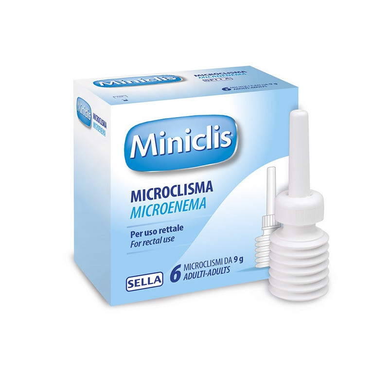 Modalità d'uso Tenere con l’indice e il pollice la ghiera posta sopra al bulbo e con l’altra mano piegare il copricannula in avanti fino a provocare la rottura del sigillo e il distacco completo del copricannula. Lubrificare la cannula con una goccia della stessa soluzione. Introdurla completamente nel retto e spremere il bulbo. Estrarre tenendo premuto e gettare. Rimanere sdraiati, possibilmente a pancia in giù, per qualche minuto prima di mettersi seduti o in piedi. Recarsi in bagno non appena si avverte lo stimolo ad evacuare. Miniclis può essere auto-somministrato o somministrato da un’altra persona. Attenzione: nei bambini fino a 3 anni di età introdurre la cannula non oltre la metà della sua lunghezza. Per solo uso rettale. È consigliabile utilizzare Miniclis una volta al giorno. Ripetere l’applicazione in caso di necessità senza superare la dose massima di 2 microclismi nelle 24 ore (uno alla sera e uno alla mattina dopo). Non usare per periodi superiori ai 30 giorni. Consultare il medico in caso di assenza di risultati o del persistere della costipazione. L’uso prolungato di evacuanti non è consigliato e può portare a dipendenza.