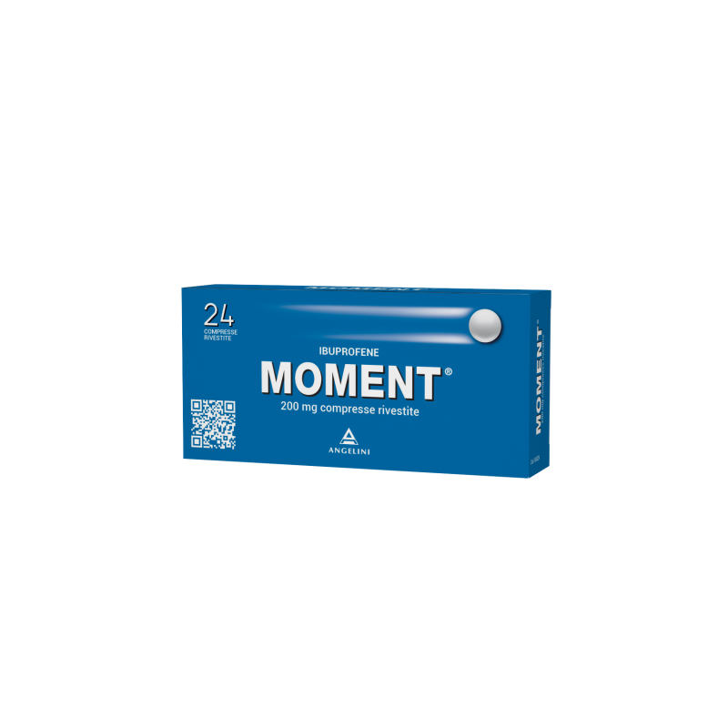 • In pazienti asmatici il prodotto deve essere utilizzato con cautela, dopo aver consultato il medico. • L’uso di Moment, come di qualsiasi farmaco inibitore della sintesi delle prostaglandine e della cicloossigenasi è sconsigliato nelle donne che intendano iniziare una gravidanza. • La somministrazione di Moment dovrebbe essere sospesa nelle donne che hanno problemi di fertilità o che sono sottoposte a indagini sulla fertilità. • L’uso di Moment deve essere evitato in concomitanza di FANS, inclusi gli inibitori selettivi della COX–2. • Gli effetti indesiderati possono essere minimizzati con l’uso della più bassa dose efficace per la più breve durata possibile di trattamento che occorre per controllare i sintomi (vedere i paragrafi sottostanti sui rischi gastrointestinali e cardiovascolari). • Effetti cardiovascolari e cerebrovascolari: studi clinici e dati epidemiologici suggeriscono che l’uso di ibuprofene, specialmente ad alti dosaggi (2400 mg/die) e per trattamenti di lunga durata, può essere associato ad un modesto aumento del rischio di eventi trombotici arteriosi (p.es. infarto del miocardio o ictus). In generale, gli studi epidemiologici non suggeriscono che basse dosi di ibuprofene (per es. ≤ 1200 mg/die) siano associate ad un aumento del rischio di infarto del miocardio. • Negli adolescenti disidratati esiste il rischio di alterazione della funzionalità renale • Anziani: i pazienti anziani hanno un aumento della frequenza di reazioni avverse ai FANS, specialmente emorragie e perforazioni gastrointestinali, che possono essere fatali (vedi sezione 4.2). • Emorragia gastrointestinale, ulcerazione e perforazione: durante il trattamento con tutti i FANS, in qualsiasi momento, con o senza sintomi di preavviso o precedente storia di gravi eventi gastrointestinali, sono state riportate emorragia gastrointestinale, ulcerazione e perforazione, che possono essere fatali. • Negli anziani e in pazienti con storia di ulcera, soprattutto se complicata da emorragia o perforazione (vedi sezione 4.3), il rischio di emorragia gastrointestinale, ulcerazione o perforazione è più alto con dosi aumentate di FANS. Questi pazienti devono iniziare il trattamento con la più bassa dose disponibile. L’uso concomitante di agenti protettori (misoprostolo o inibitori di pompa protonica) deve essere considerato per questi pazienti e anche per pazienti che assumono basse dosi di aspirina o altri farmaci che possono aumentare il rischio di eventi gastrointestinali (vedi sotto e sezione 4.5).• Pazienti con storia di tossicità gastrointestinale, in particolare anziani, devono riferire qualsiasi sintomo gastrointestinale inusuale (soprattutto emorragia gastrointestinale) in particolare nelle fasi iniziali del trattamento. • Controllare attentamente i pazienti che assumono farmaci concomitanti che potrebbero aumentare il rischio di ulcerazione o emorragia, come corticosteroidi orali, anticoagulanti come warfarin, inibitori selettivi del reuptake della serotonina o agenti antiaggreganti come l’aspirina (vedi sezione 4.5). • Quando si verifica emorragia o ulcerazione gastrointestinale in pazienti che assumono Moment il trattamento deve essere sospeso. • I FANS devono essere somministrati con cautela nei pazienti con una storia di malattia gastrointestinale (colite ulcerosa, morbo di Crohn) poiché tali condizioni possono essere esacerbate (vedi sezione 4.8). • Cautela è richiesta prima di iniziare il trattamento nei pazienti con anamnesi positiva per ipertensione e/o insufficienza cardiaca poiché in associazione al trattamento con i FANS sono stati riscontrati ritenzione di liquidi, ipertensione ed edema. • Gravi reazioni cutanee alcune delle quali fatali, includenti dermatite esfoliativa, sindrome di Stevens–Johnson e necrolisi tossica epidermica, sono state riportate molto raramente in associazione con l’uso dei FANS (vedi sezione 4.8). Nelle prime fasi della terapia i pazienti sembrano essere a più alto rischio: l’insorgenza della reazione si verifica nella maggior parte dei casi entro il primo mese di trattamento. Moment deve essere interrotto alla prima comparsa di rash cutaneo, lesioni della mucosa o qualsiasi altro segno di ipersensibilità. • Moment contiene: – saccarosio: i pazienti affetti da rari problemi ereditari d’intolleranza al fruttosio, da malassorbimento di glucosio–galattosio, o da insufficienza di sucrasi isomaltasi, non devono assumere questo medicinale.