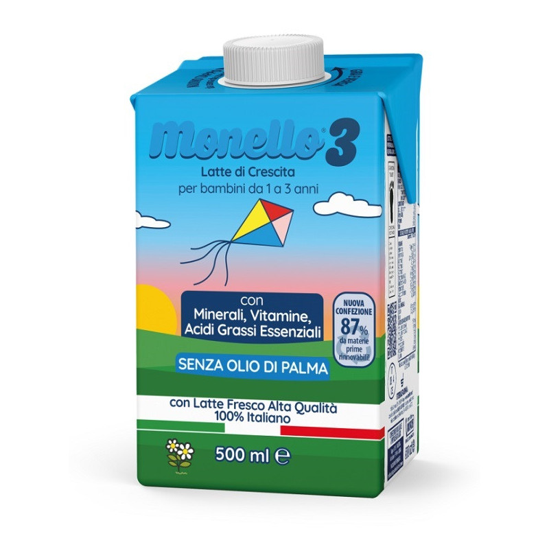 Avvertenze Si raccomanda l'utilizzo del latte materno durante lo svezzamento e anche dopo l'anno di vita. Monello 3 latte liquido per la crescita va inserito all'interno di una dieta varia ed equilibrata e di uno stile di vita sano. Chiedere consiglio al pediatra.