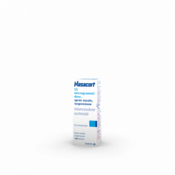 Posologia Adulti La dose iniziale raccomandata è di 220 microgrammi corrispondente a 2 spruzzi in ciascuna narice una volta al giorno. Una volta che i sintomi sono sotto controllo i pazienti possono essere sottoposti a terapia di mantenimento con 110 microgrammi (corrispondenti ad uno spruzzo per narice una volta al giorno). Popolazione pediatrica Bambini con età dai 12 anni in poi La dose iniziale raccomandata è di 220 microgrammi corrispondenti a 2 spruzzi per narice una volta al giorno. Una volta controllati i sintomi, i pazienti possono essere mantenuti con 110 microgrammi (1 spruzzo per narice una volta al giorno). Bambini dai 6 ai 12 anni La dose raccomandata è di 110 microgrammi corrispondente a 1 spruzzo in ciascuna narice una volta al giorno. In pazienti con sintomi più gravi, può essere usata una dose di 220 microgrammi. Una volta raggiunto il controllo dei sintomi, i pazienti devono essere sottoposti a terapia di mantenimento con la minima dose efficace (vedere paragrafi 4.4 e 5.1). Bambini dai 2 ai 5 anni La dose raccomandata e massima è 110 microgrammi corrispondenti a 1 spruzzo in ogni narice una volta al giorno (vedere paragrafi 4.4 e 5.1). Non è consigliato l’uso continuato oltre i 3 mesi nei bambini al di sotto dei 12 anni. Modo di somministrazione NASACORT è solo per uso intranasale. È importante agitare il flacone delicatamente prima di ogni uso. Il dispositivo nasale eroga 55 mcg di triamcinolone acetonide per spruzzo (valutato attraverso tests in vitro) dopo un’iniziale carica spruzzando 5 volte a vuoto fino ad ottenere una sottile nebulizzazione. NASACORT rimarrà così adeguatamente caricato per 2 settimane. Se il prodotto rimane inutilizzato per più di 2 settimane, può essere ricaricato con uno spruzzo a vuoto. L’erogatore deve essere rivolto lontano da voi mentre spruzzate. Dopo l’uso dello spray: pulire delicatamente l’erogatore con un fazzoletto pulito di carta o anche di tessuto e riposizionare il cappuccio. Se l’erogatore non funzionasse e dovesse essere bloccato, pulirlo come descritto di seguito. Non tentare MAI di sbloccarlo, o di allargare il foro dell’erogatore con un ago o altro oggetto acuminato, in quanto ciò distrugge il meccanismo di spruzzo. Lo spray nasale deve essere pulito almeno una volta alla settimana o anche più spesso se si blocca. PER PULIRE LO SPRAY 1. Rimuovere solamente il cappuccio e l’erogatore * 2. Mettere a bagno in acqua tiepida per qualche minuto sia il cappuccio che l’erogatore, quindi sciacquare con acqua corrente fredda di rubinetto 3. Scuotere per rimuovere l’acqua in eccesso e poi lasciare asciugare all’aria 4. Re-inserire l’erogatore dello spray sul flacone 5. Caricare l’unità di spruzzo come necessario fino alla produzione di una sottile nebulizzazione ed utilizzare come di solito. * la parte è indicata nel disegno sotto riportato Inoltre, il flacone non va utilizzato oltre i 30 spruzzi e/o per più di un mese dall’apertura (flacone da 6,5 g), oppure oltre i 120 spruzzi e/o per più di 2 mesi dall’apertura (flacone da 16,5 g). Non trasferire la sospensione rimasta in un altro flacone.