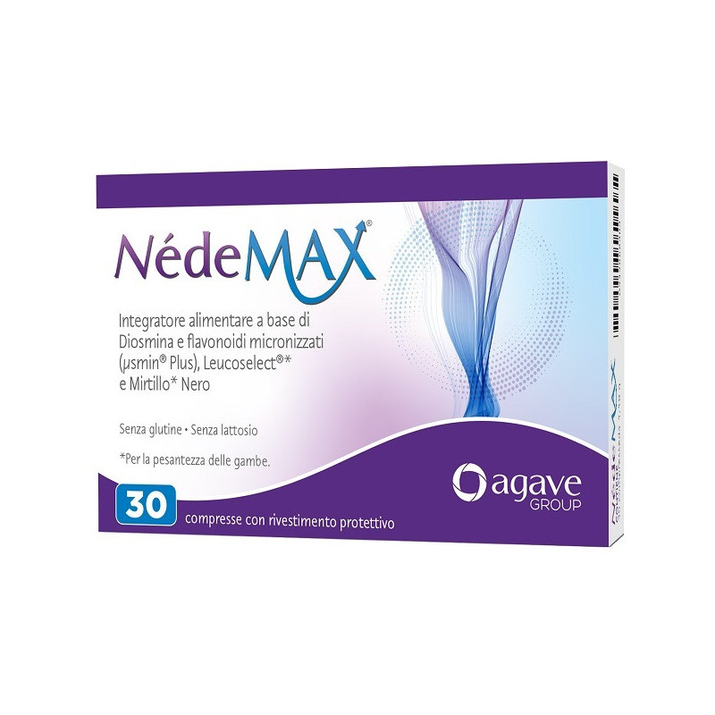 Descrizione Integratore alimentare a base di diosmina e flavonoidi micronizzati, Leucoselect (proantocianidine) e mirtillo nero. Nédemax è indicato in tutti i casi di insufficiente apporto nella dieta o aumentato fabbisogno di tali nutrienti. La Vitis vinifera (da cui sono estratte le proantocianidine) e il mirtillo nero sono utili alla funzionalità del microcircolo, in caso di pesantezza delle gambe.