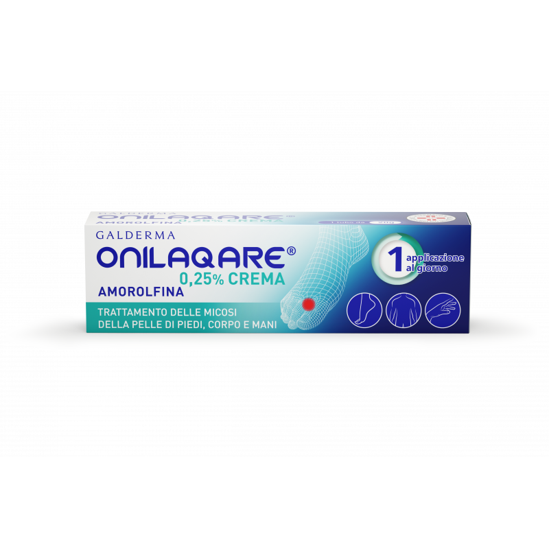 Applicare una volta al giorno (alla sera) sulla zona cutanea interessata. Il trattamento deve essere continuato senza interruzioni fino alla guarigione completa, proseguendo poi per diversi giorni. La durata del trattamento dipende dalla specie del fungo e dalla localizzazione dell'infezione. In generale il trattamento dovrebbe essere protratto per almeno due o tre settimane. Per le micosi ai piedi possono essere necessarie terapie di sei settimane e più. Onilaqare 0,25% crema è incolore e, dopo assorbimento o dopo essiccazione, non macchia.