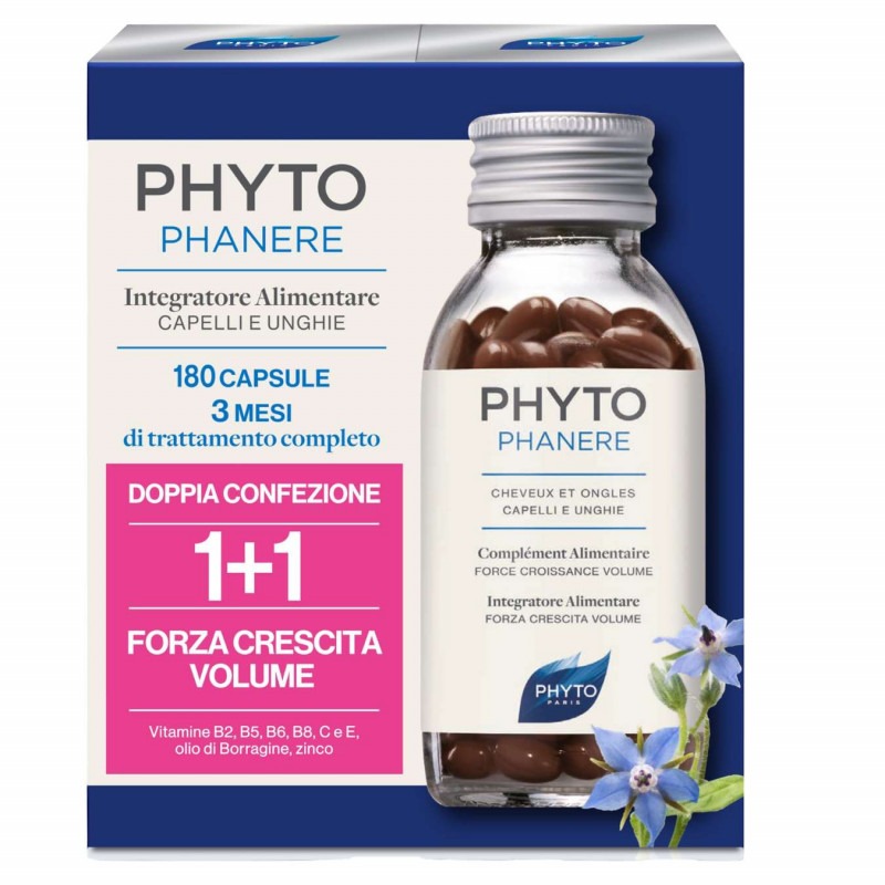 PHYTO Phytophanère 90+90 capsule è un integratore alimentare studiato per supportare il benessere di capelli e unghie, grazie a una formula completa a base di vitamine, minerali e aminoacidi.
