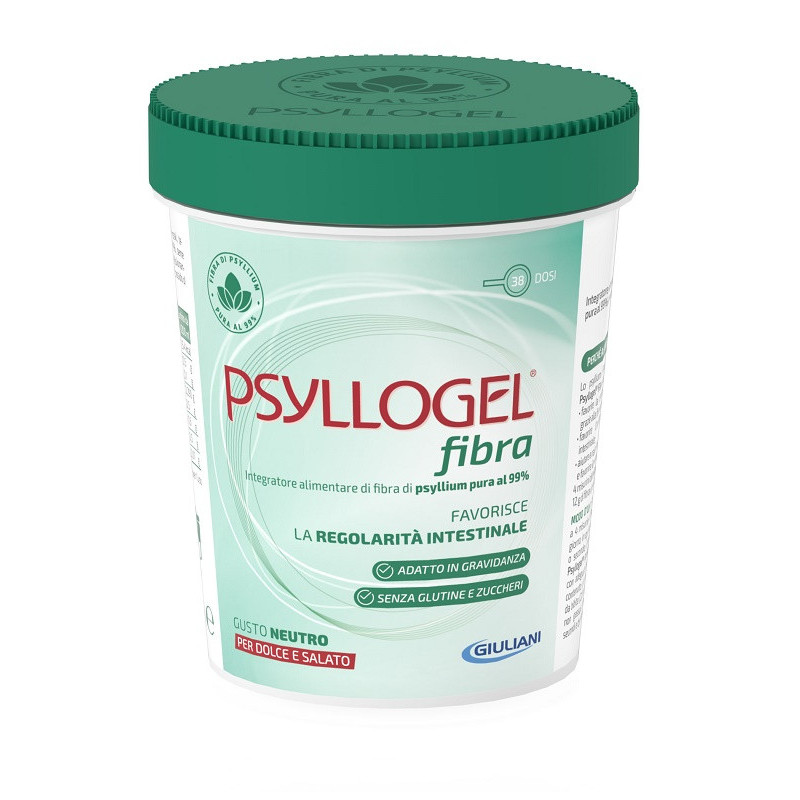 4 bustine di Psyllogel Fibra polvere apportano 12 g di fibra di psyllium pura al 99%.