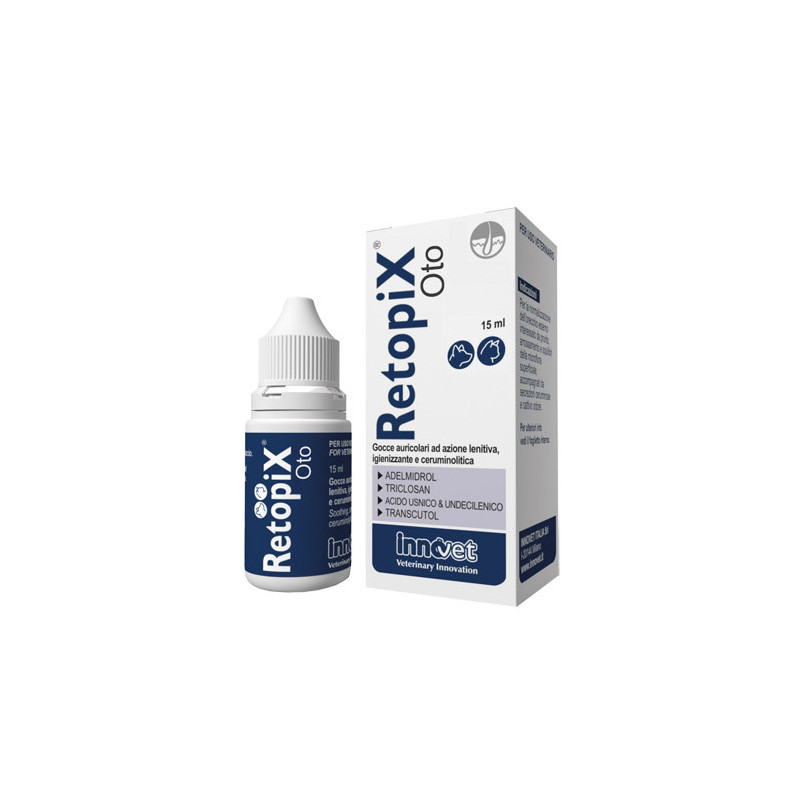 Gocce auricolari ad azione lenitiva, igienizzante e ceruminolitica. Per la normalizzazione dell'orecchio esterno interessato da arrossamento, secrezioni ceruminose e cattivo odore. Retopix Oto non è un farmaco veterinario, ma un prodotto per l'igiene dell'orecchio di cani e gatti.