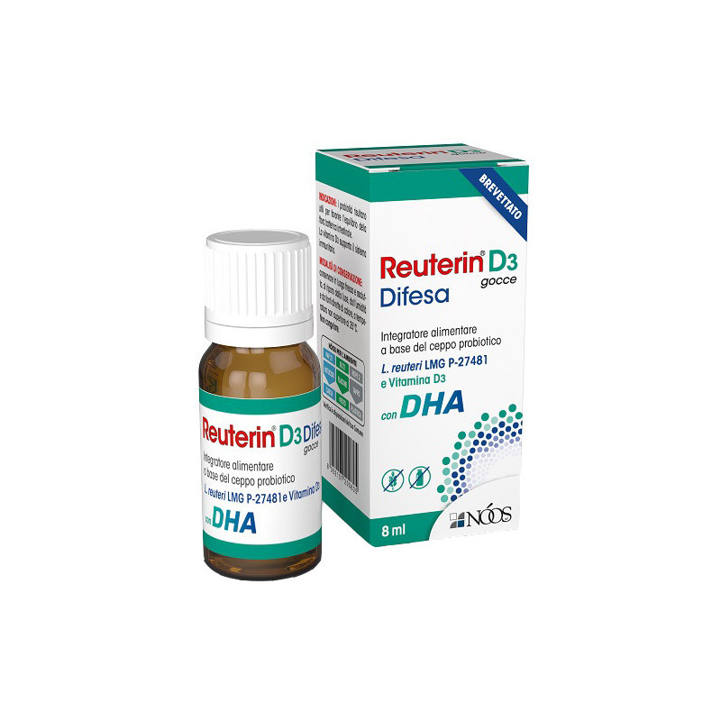 Descrizione Integratore alimentare a base di L. reuteri LMG P-27481, vitamina D3 e DHA.