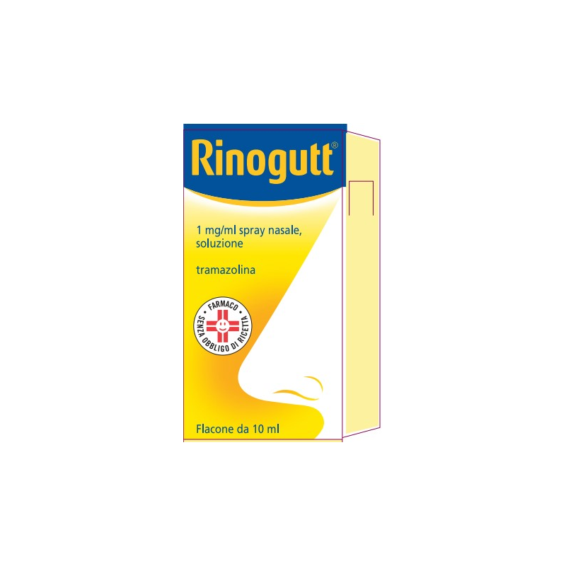 La seguente convenzione è stata utilizzata per la classificazione degli effetti indesiderati: molto comune (≥1/10), comune (≥1/100, < 1/10), non comune (≥1/1000 e <1/100), raro (≥1/10.000 e <1/1000), molto raro (<1/10.000), non nota (la frequenza non può essere definita sulla base dei dati disponibili). I seguenti effetti indesiderati possono verificarsi a seguito dell’uso di Rinogutt Spray Nasale Soluzione: Disturbi del sistema immunitario. Non nota: Ipersensibilità. Disturbi psichiatrici. Non nota: Allucinazioni, insonnia; Non comune: Irrequietezza. Patologie del sistema nervoso. Non nota: Sonnolenza, sedazione; Non comune: Mal di testa; Rara: Vertigini, disgeusia. Patologie cardiache. Non nota: Aritmie, tachicardia; Non comune: Palpitazioni. Patologie respiratorie, toraciche e mediastiniche. Rara: Epistassi; Comune: Bruciori al naso; Non comune: Edema nasale, secchezza nasale, rinorrea, starnuti. Patologie gastrointestinali. Non comune: Nausea. Patologie della cute e del tessuto sottocutaneo. Non nota: Rash, prurito, edema della cute*. Patologie sistemiche e condizioni relative alla sede di somministrazione. Non nota: Edema delle mucose*, fatica. Esami diagnostici. Non nota: Aumento della pressione arteriosa. * come sintomo di ipersensibilità Segnalazione delle reazioni avverse sospette La segnalazione delle reazioni avverse sospette che si verificano dopo l’autorizzazione del medicinale è importante, in quanto permette un monitoraggio continuo del rapporto beneficio/rischio del medicinale. Agli operatori sanitari è richiesto di segnalare qualsiasi reazione avversa sospetta tramite il sistema nazionale di segnalazione all’indirizzo www.agenziafarmaco.gov.it/content/come-segnalare-una-sospetta-reazione-avversa.