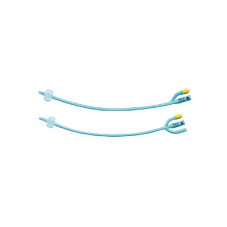 Catetere vescicale a permanenza tipo foley, in silicone-lattice-silicone, con imbuto e valvola speciale per siringhe con raccordi Luer e Luer-Lock; punta radiopaca.